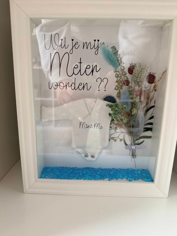 met een mini rompertje en droogbloemen