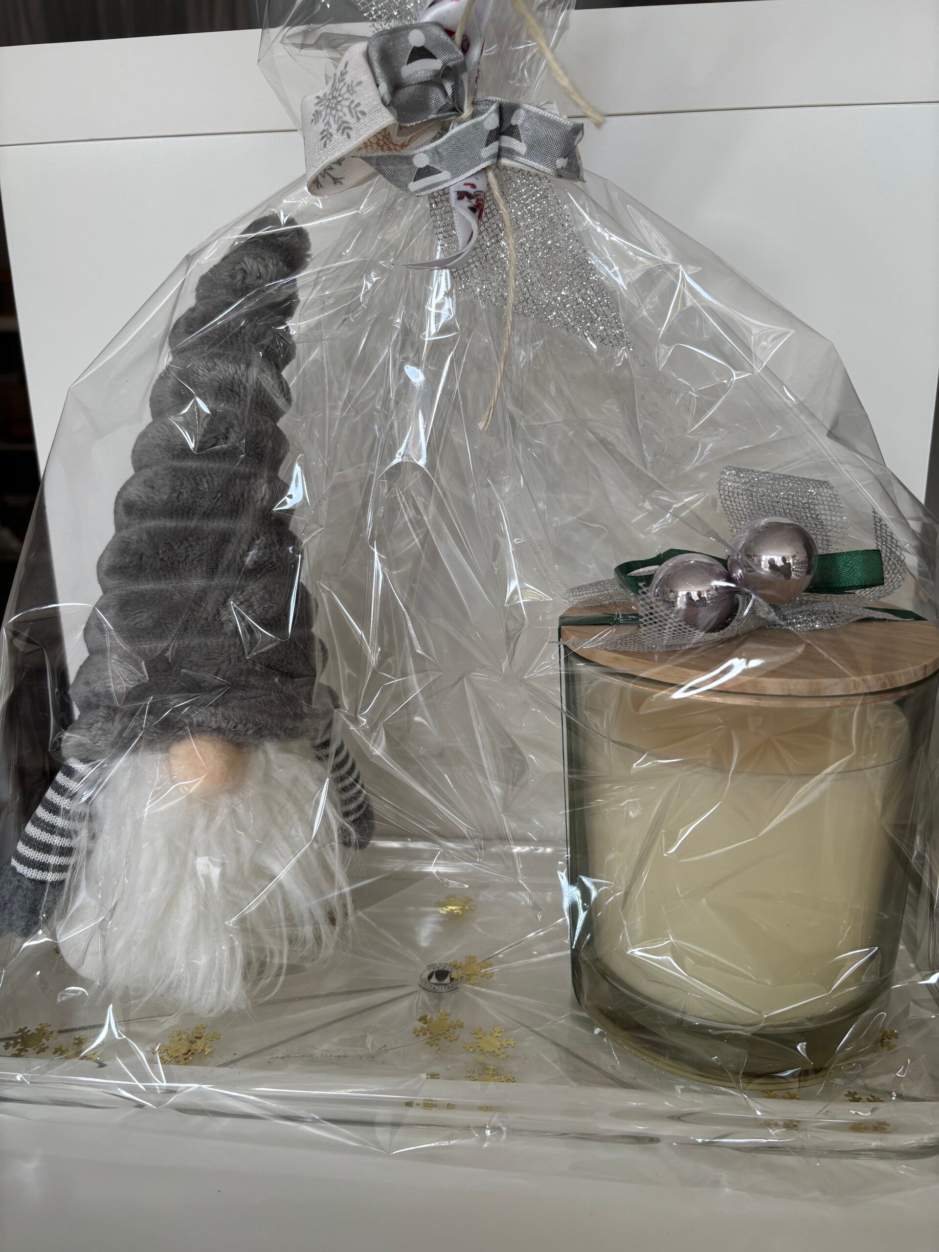 Gnoom op glazen schaal en luxe geurkaars